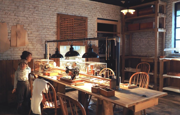 Ein ILGWU-Label im rekonstruierten New Yorker Sweatshop im Deutschen Auswandererhaus zeigt einen wichtigen Abschnitt der Geschichte des Arbeitskampfes.