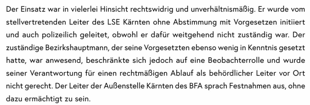 Selbst aus der Veröffentlichung dieser unglaublichen Vorfälle lernen sie nichts trotz massiven, demokratischen Protest, vernichteten Ergebnissen einer Expert:innenkommission machen sie sofort weiter. Unter fadenscheinigen Annahmen wird ein ehemalige Campteilnehmer von der Polizei in Wien in seiner Wohnung aufgesucht.