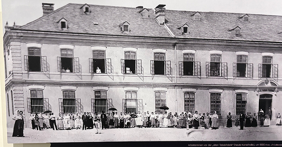 Arbeiterinnen vor der “alten Tabakfabrik” (heute Kunsthalle in Krems) um 1880