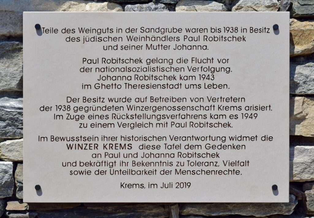 Zwei Jahre später: “Konfrontiert mit den dunklen Seiten der Gründungsgeschichte sei man zuerst „nicht diskussionsbereit“ gewesen, räumte Winzer-Krems-Geschäftsführer Franz Ehrenleitner ein: „Zu fern schien das Geschehene, sowohl zeitlich als auch persönlich.“ Später habe sich aber folgender Ansatz manifestiert: „Wer die eigene Geschichte nicht kennt oder gar leugnet, hat auch keine Grundlage, seine Zukunft in Anstand zu meistern.6“