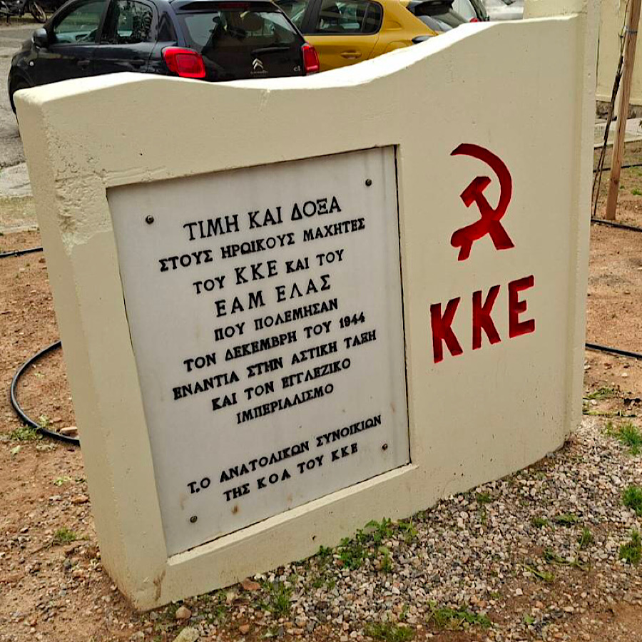 - KKE (Kommunistische Partei Griechenlands), EAM – ELAS (Die wichtigste Widerstandsbewegung und deren militärischer Arm während der Besatzungszeit im Zweiten Weltkrieg), T.O. (Regionale Organisation – Topiki Organos), KOA (Kommunistische Organisation Athens) ↩︎