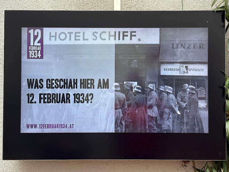 Wir sind zum Aufcampen einige Tage in Linz und nutzen die Gelegenheit einerseits unserer Vorliebe des Geocaching und gleichzeitig den „Roten Spuren“ im Februar 1934 nachzuspüren.