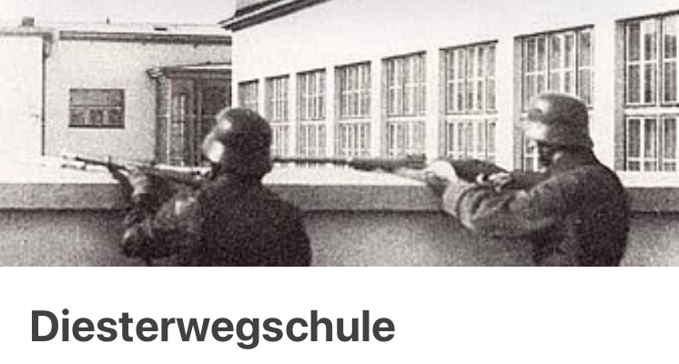 Auf dem Turm der Diesterwegschule postierte der Schutzbund schon am Vormittag ein Maschinengewehr. Von dort aus war es möglich, eine wichtige Kreuzung in diesem Teil der Stadt, die Eiserne Hand, und weitere Durchzugsstraßen zu beherrschen