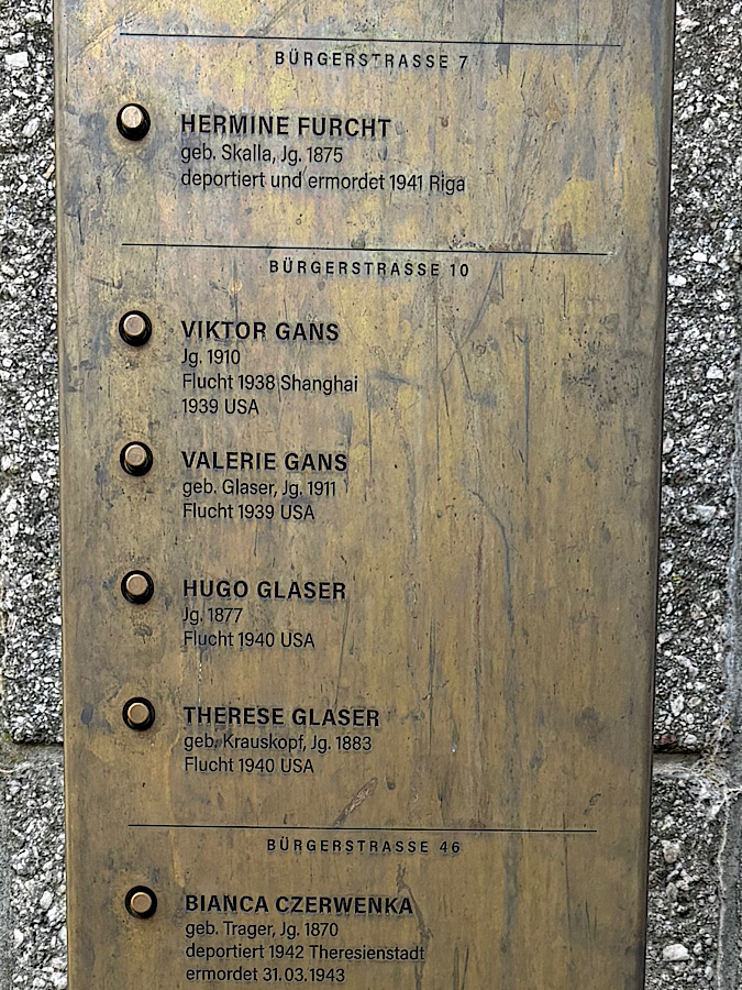 Hier auf der Stele im Schillerpark wird Johanna Richter genannt. Johanna Richter kam 1878 als Johanna Fischer und Tochter des Bernhard Fischer und der Julie, geborene Herman, in Chiesch (Chyse, ČR) zur Welt.