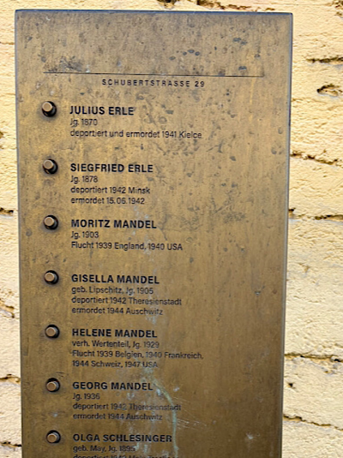 Georg Mandel war erst zwei Jahre alt, als mit März 1938 und dem Einmarsch der Deutschen Wehrmacht in Österreich alle Jüdinnen und Juden grausame Verfolgungen erleiden mussten. Seinen Vater nahm man gefangen, die Mutter war mit den Kindern den brutalen Übergriffen der Nationalsozialisten allein ausgesetzt. Schließlich schoben im Jänner 1939 Nationalsozialisten die Familie innerhalb des Hauses an der Schubertstraße in zwei Räume des Erdgeschoßes ab, weil man ihre Wohnung einem „Arier“ vermietete.