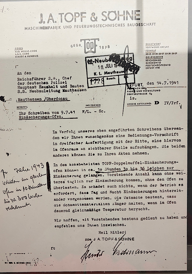 Die Vernichtung von Menschen war im Nationalsozialismus keine vorübergehende Erscheinung. Sie war, so erkannte man bei Topf & Söhne, offensichtlich auf Dauer und Ausweitung angelegt. Ohne Auftrag, aus freien Stücken, erfanden Ingenieure der Firma noch effizientere Vorrichtungen zur Beseitigung von immer mehr Menschen.