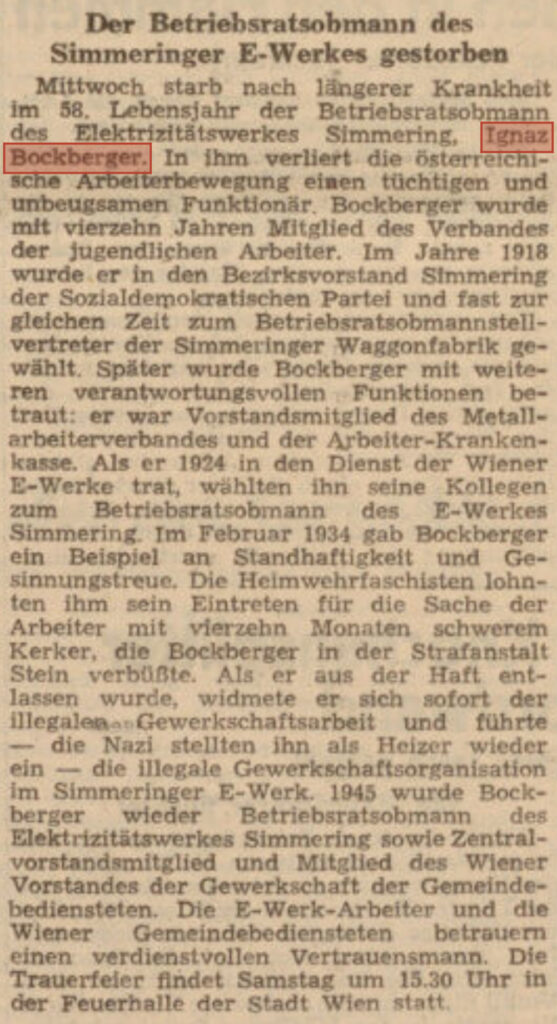 1945 wurde Bockberger wieder Betriebsratsobmann und Mitglied des Vorstands der Gewerkschaft der Gemeindebediensteten.