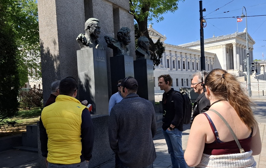 Das Denkmal zum 10jährigen Bestehen der Republik, wurde 1928 von der Gemeinde Wien errichtet. Weshalb wohl? – Eine Erklärung für mich ist, dass der damalige Bundeskanzler Ignaz Seipel und konservative Parteien gar kein Interesse an einer demokratischen Republik mit einem Parlament, wo Parteien und Abgeordnete das Staatsgeschehen mitentscheiden, hatten. In Wirklichkeit begann die Beseitigung der Demokratie und der Institutionen und der Partei der Arbeiter:innenbewegung, die 1934 vollendet wurde.
